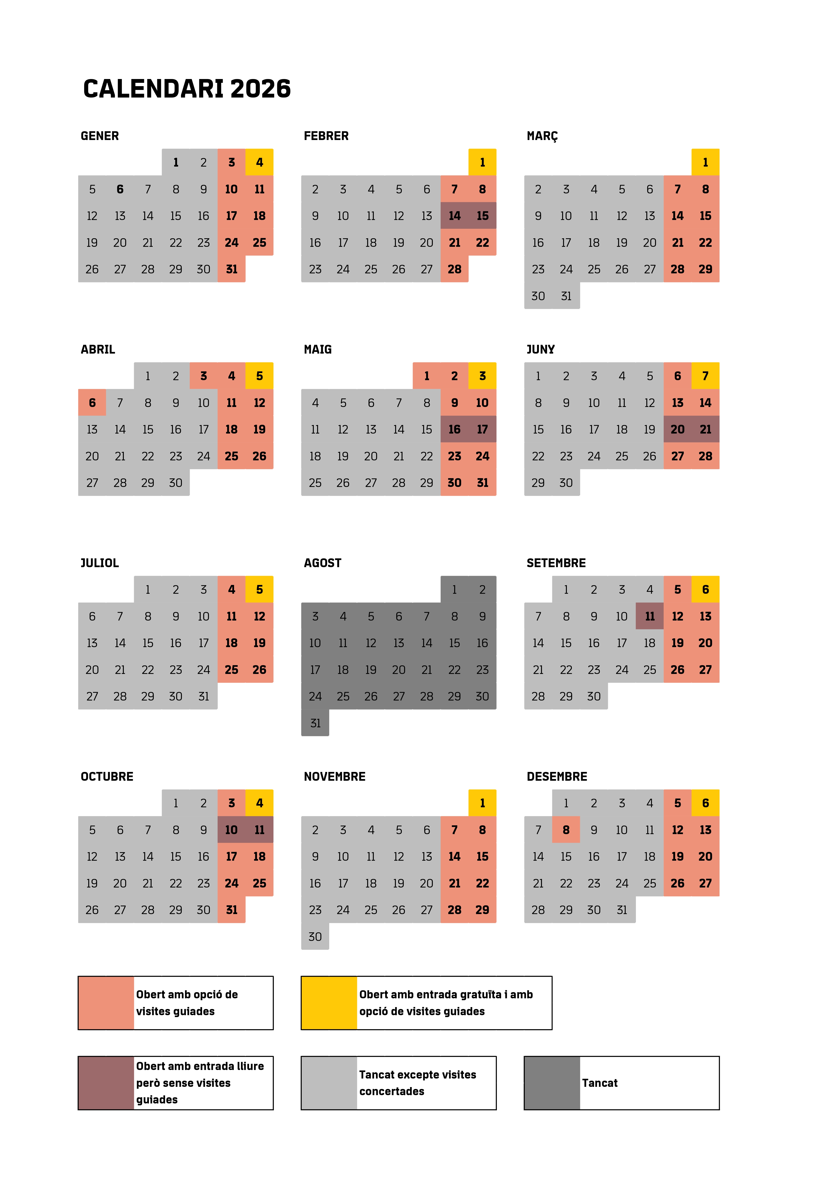 Tancament: 1 i 6 de gener, 24 de juny, el mes d’agost i 25 i 26 de desembre.